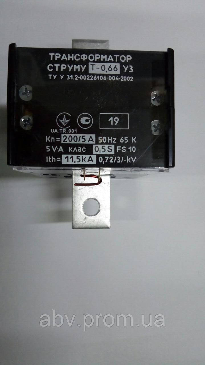 Трансформатори струму Т-0,66 призначені для передавання сигналу вимірювальної інформації приладам вимірювання, автоматики, сигналізації та керування в електричних ланцюгах змінного струму частотою 50 Hz або 60 Hz. Трансформатори Т-066 200/5 призначені для роботи в закритих приміщеннях за температури навколишнього повітря від мінус 45 З до плюс 40 З і відносною вологістю до 98% за 25 С. Атмосферне середовище малозабруднене, висота над рівнем моря до 1000 м.Трансформатори Т-0,66-200/5 відповідають вимогам ДСТУ ГОСТ 7746-2003 «Трансформаторі струму. Загальні технічні умови», ГОСТ 7746-2001 «Трансформатори струму. Загальні технічні умови» та технічних умов ТУ У 31.2-00226106-004-2002 «Трансформатори струму Т-0,66; ТШ-0,66»