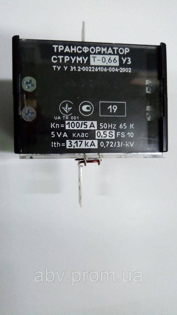 Трансформатор струму Т 0,66 100/5, призначений для вимірювання й контролю великих струмів із використанням стандартних вимірювальних приладів і пристроїв автоматичного керування й контролю, а також для передавання інформації вимірювального приладу та приладів обліку електроенергії.